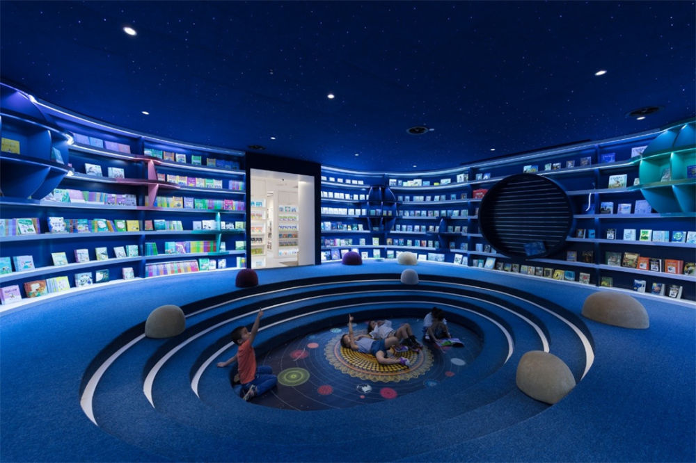 成都文轩BOOKS九方店一层和二层将有生命的大自然花草植物,融入整体设计环境之中,打造舒适而有活力的空间。三层以文明和进化为主题,打造国际象棋、冰河世纪、星空故事等多个趣味主题空间,为到书店的小朋友们营造一个梦幻的童话世界。
