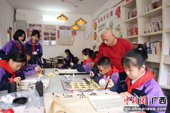 中新网广西新闻12月20日电(苏桂)12月18日,广西桂林市平乐县二塘镇二塘社区的农家书屋挤满了刚放学的小学生,有的阅读课外书籍,有的学绘画、有的练书法,旁边的志愿者老师有的指导、有的解读,交流融洽。