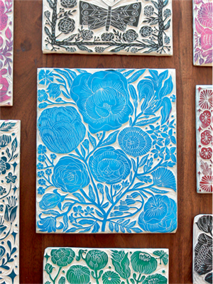 第四部分——雕版创意,展示了版画在日常生活中创造性、延伸性的应用,如藏书票、感谢卡、包装纸、茶巾、壁纸等,多种形式让你在生活中的方方面面,都能展现你的版画天赋!
