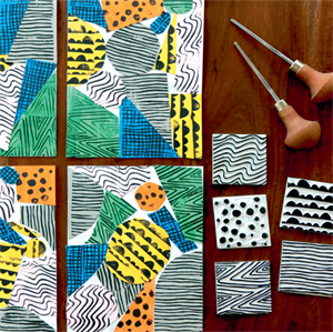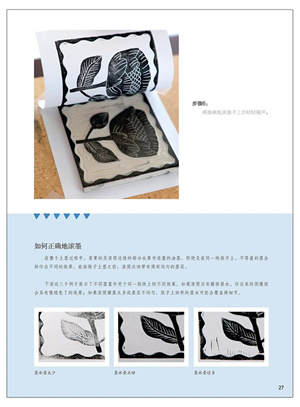 特殊的版画技法在书中也有介绍哦~书中通过几种独特的图案的组成,介绍了橡皮块和戳印在版画创作中的应用,包括抽象图形、重复图案、彩色图案构成及纸片拼贴的版画等。