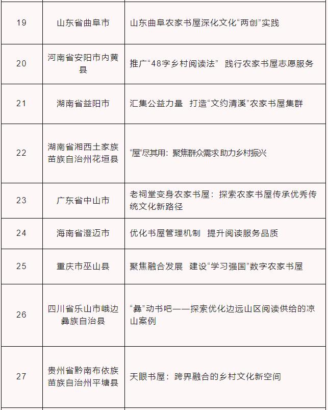 第二届全民阅读大会最美农家书屋拟推荐名单