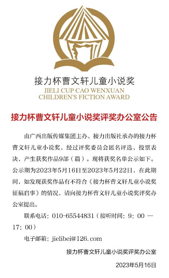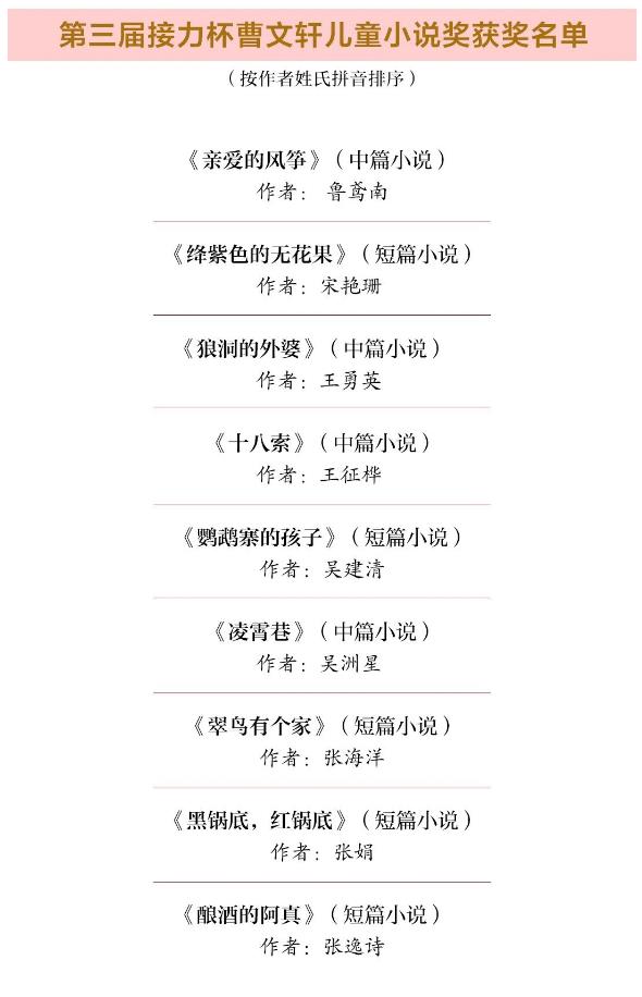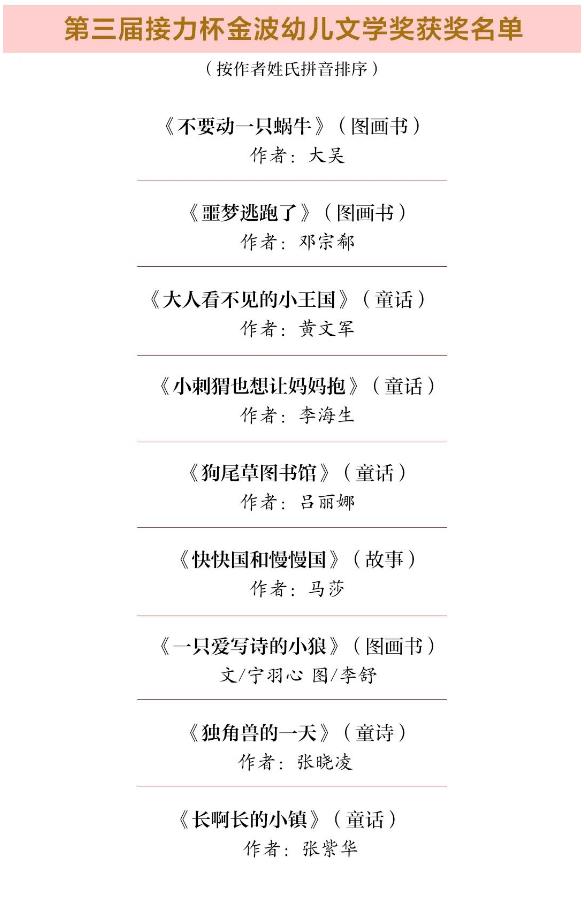 第三届接力杯金波幼儿文学奖、接力杯曹文轩儿童小说奖评选结果公示