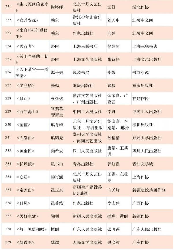 第十一届茅盾文学奖参评作品征集工作于2023年3月15日启动,2023年4月30日结束。经初步审核,共有239部作品符合《茅盾文学奖评奖条例》所规定的参评条件。现将参评作品目录在《文艺报》和中国作家网公示。