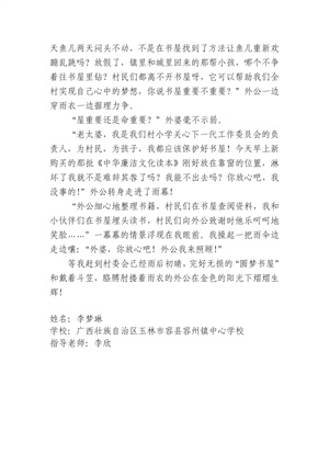 2022年“我的书屋·我的梦”农村少年儿童阅读实践活动优秀作品