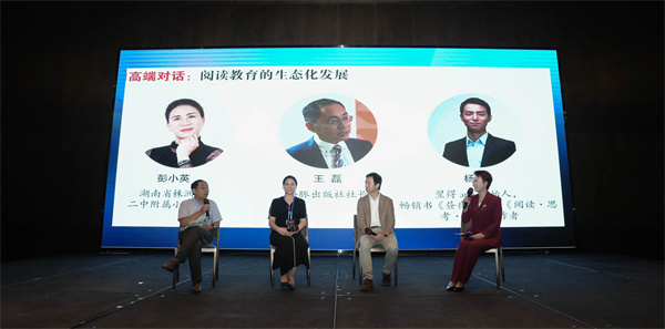 在高端对话环节,海豚出版社社长王磊,彭小英,翌得 APP 创始人、畅销书《昼夜诗文》《阅读·思考·写作》作者杨洋,从多个角度畅谈阅读教育的生态化发展。