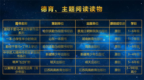 全方位解读特色阅读、智慧阅读、深度阅读。西北师范大学中国品格研究中心主任、《中国品格》(含波斯语版)系列丛书主编严文科,介绍了中华优秀传统文化在立德树人教育中的价值、内容和路径。《十月少年文学》杂志执行主编张晓莉分享了以文学为核心,向戏剧展演、传统文化、研学课程等方面延展的立体化阅读探索。海豚传媒市场中心教育系统推广经理、儿童阅读推广人徐璐分享了智慧阅读赋能书香校园建设新探索。围绕深度阅读的开展,新疆青少年出版社副总编辑许国萍以“一本书背后的故事”为切入进行分享。