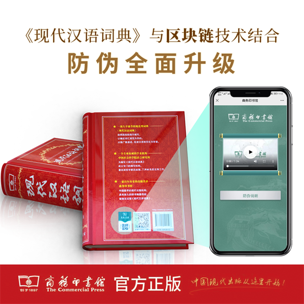 目前,《现代汉语词典》《古代汉语词典》结合区块链技术,防伪全面升级,读者通过观察触摸、扫码查询可更清晰的辨别真伪。
