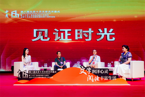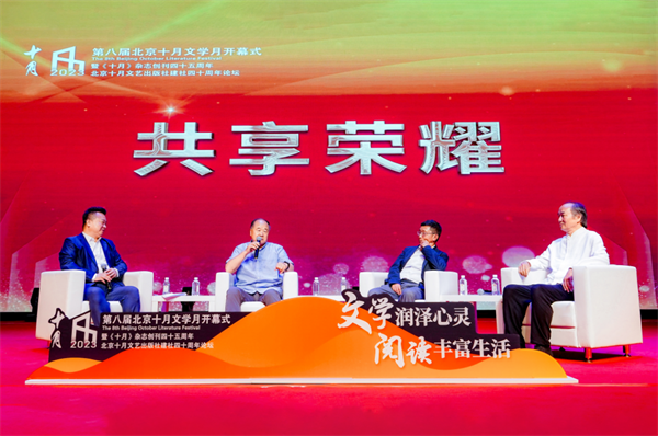 2023年9月2日,第八届北京十月文学月开幕式暨《十月》杂志创刊四十五周年、北京十月文艺出版社建社四十周年论坛活动在北京文联老舍剧场举办,论坛设“见证时光”“一起成长”“共享荣耀”三个主题分论坛,莫言、阿来、刘亮程、孟繁华、白烨、徐则臣、乔叶、弋舟等作家、评论家及读者代表一同追忆过去,见证当下,畅想未来。