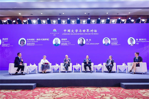 第一场圆桌对话以“中国文学与世界对话”为主题,由中国作协书记处书记、《人民文学》主编施战军主持。北京语言大学教授、著名作家、茅盾文学奖获得者梁晓声,著名作家、中国首位诺贝尔文学奖获得者莫言,著名作家、北京作协副主席、鲁迅文学奖获得者刘庆邦,西安外国语大学俄语教授、俄语语言与文化中心主任杜布阔娃•奥莉卡,荷兰翻译家施露,共同探讨新时代的中国文学面临如何更好反映当下,助力中国文学与世界对话。