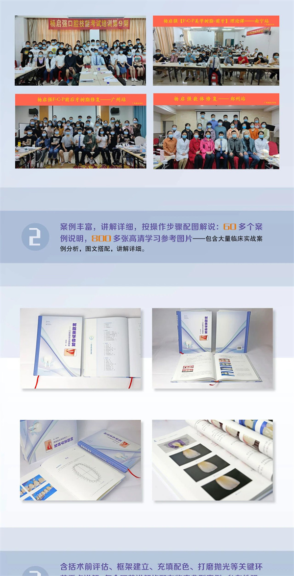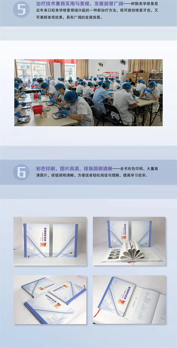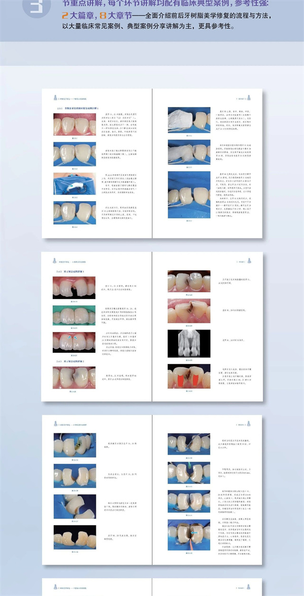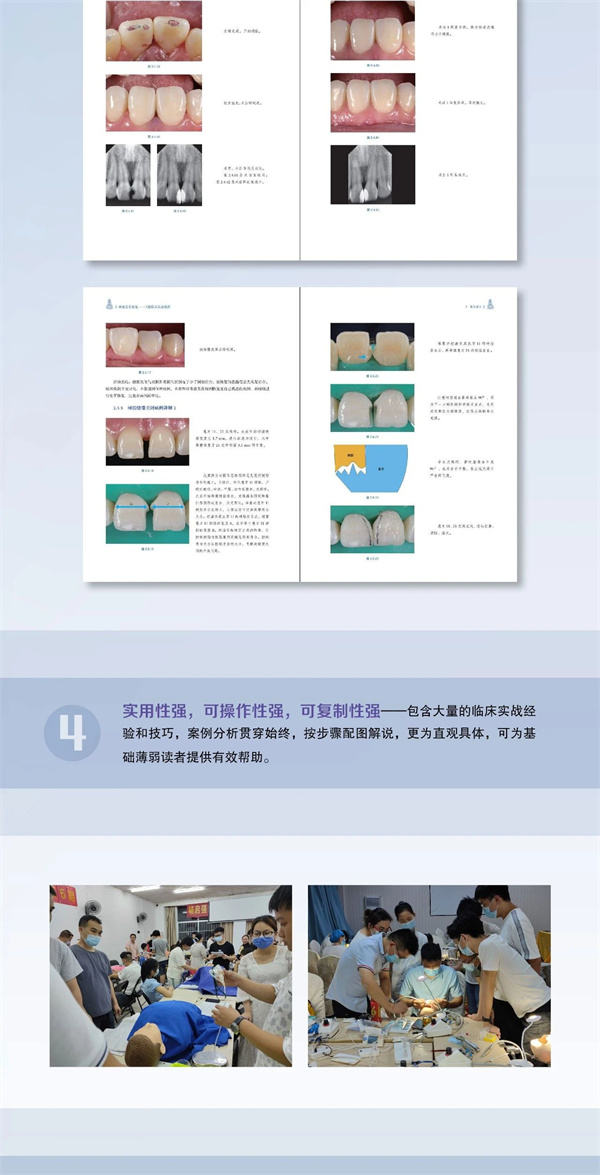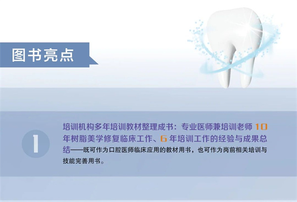 作者结合多年临床实践经验,在《树脂美学修复——口腔临床实战教程》一书中分别根据上述问题与难点进行了详细分析,给出了解决方案与建议,并结合临床案例进行了实践指导与经验分享。该书侧重实践指导,临床实战案例丰富,按操作步骤配图分析解说,讲解详细,实用性强、可操作性强、可复制性强,具有较高的参考价值和指导意义,可作为口腔医师临床应用相关培训用书或口腔医师临床应用学习参考资料。