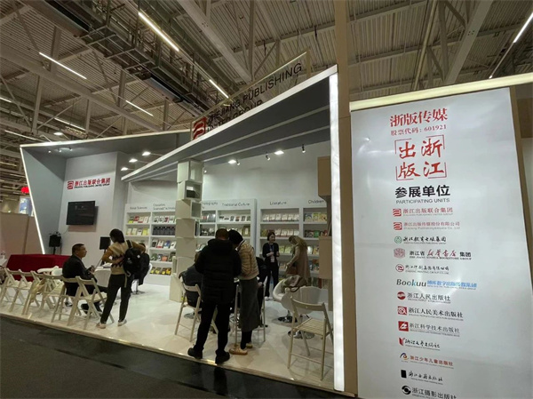 浙江出版联合集团今年在法兰克福书展上再次设立独立展位,并派出了18人参展,带来了包含人文社科、传统文化、教育科技、艺术、文学、少儿等重点板块的近200种图书,在为期5天的书展中,组织举办版贸推介、新书推介、合作签约等4场文化活动,包括“Hello.Frankfurt”浙江出版联合版贸推介会、博库数字出版传媒集团与Overdrive平台战略合作协议签约仪式、《索尔·雷特:百年纪念影像集》法兰克福书展版权引进签约仪式、《寻纸》新书分享推介会暨版权输出签约仪式等。集中展现最新一批浙江出版精品与成果。