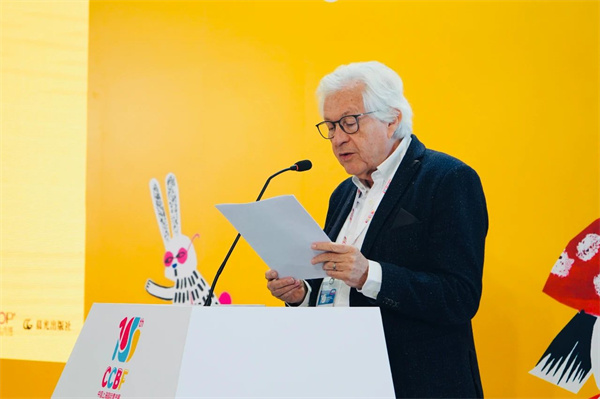 主办方代表——比利时Clavis出版公司总裁菲利普·瓦力克先生现场致辞。他对本届大赛超越以往的征稿数量表示欣喜,同时对参赛者与组委会表示感谢。菲利普先生认为,本届参赛作品极具多样性,内容丰富,主题多元,从中可以感受到中国原创绘本创作者的实力和独特的创新思维。