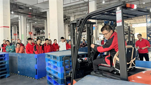 一声的清脆哨声,拉开了比赛的帷幕。驾驶着叉车、托盘车的师傅们仿佛已经人车合一,不同于老师傅的沉稳,接下来上场的小陈精彩地诠释了反面教材。他只求速度不求质量,没有仔细检查车辆状况、不系安全带、使用损坏台板……违反特种设备操作的行为层见迭出,他那越急越乱的模样引发旁人哄堂大笑的同时,也让“安全第一”的意识在笑谈中不自觉地渐入人心。