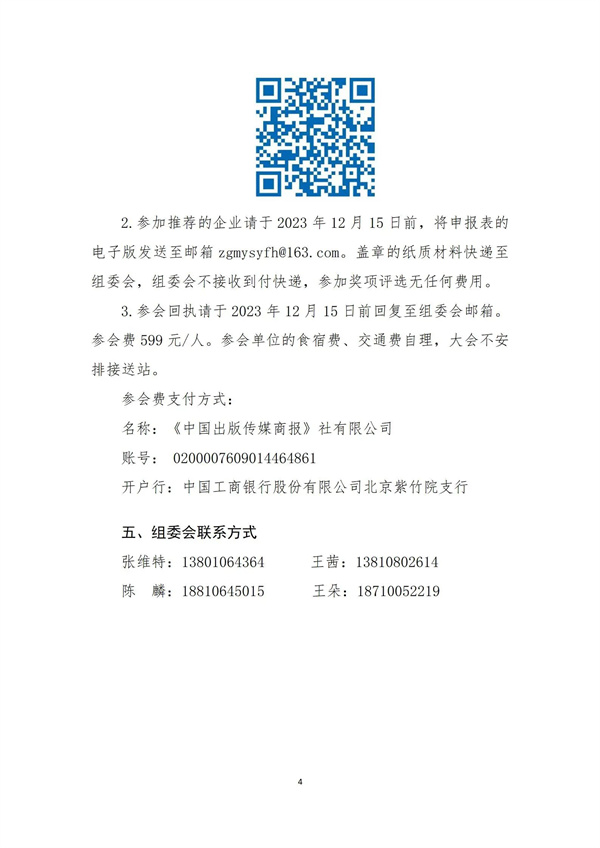 3.参会回执请于2023年12月15日前回复至组委会邮箱。参会费599元/人。参会单位的食宿费、交通费自理,大会不安排接送站。