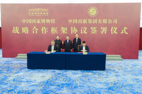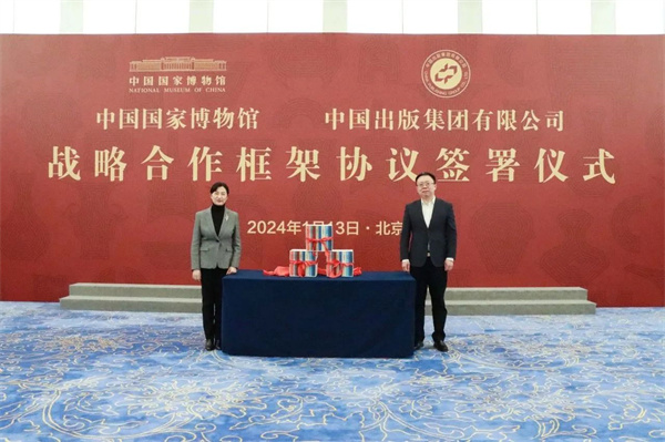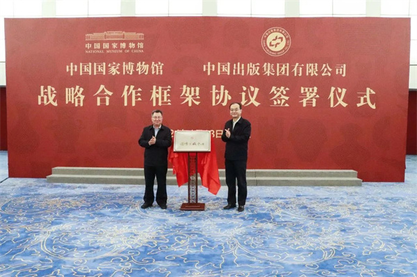 1月13日,中国出版集团有限公司与中国国家博物馆战略合作框架协议签署仪式在京举行。中国出版集团有限公司董事长、党组书记黄志坚,中国出版集团有限公司总经理、党组副书记常勃,中国国家博物馆馆长王春法出席活动,黄志坚、王春法分别致辞,中国国家博物馆副馆长丁鹏勃主持。期间还为双方共同创设的“国博出版中心”揭牌,为联合出版的《中国国家博物馆国际博物馆学译丛》(第一辑)揭幕。