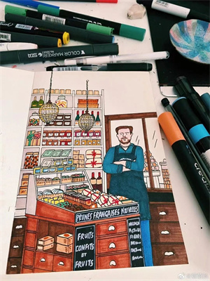 用画笔记录《巴黎百年小店》