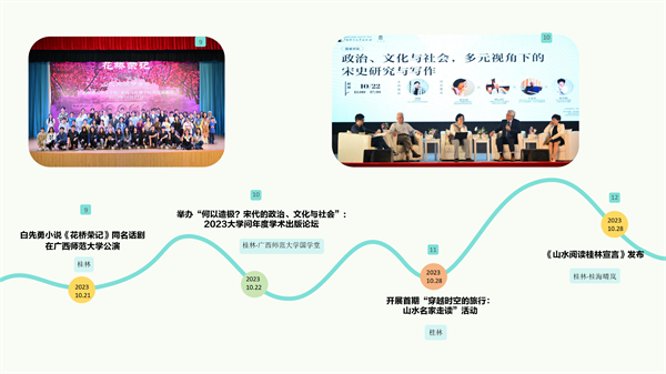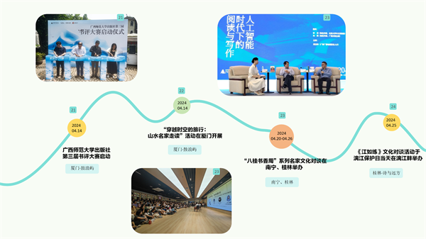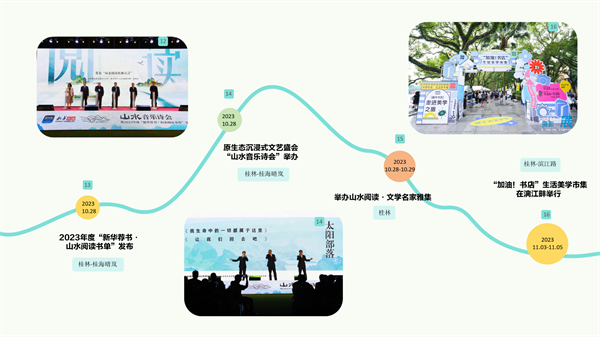 这一年,“山水阅读”始终秉持着“阅读,在山水之间”的核心理念,举办了众多丰富多彩的文化阅读活动。从独秀峰下的文化沙龙到桂海晴岚音乐诗会,从龙隐岩下的新书分享到滨江路的书店市集等等,每一场活动都是对阅读边界的深入探索。今天,我们汇集“山水阅读”一年来的代表性活动,重温山水之美,阅读之美。