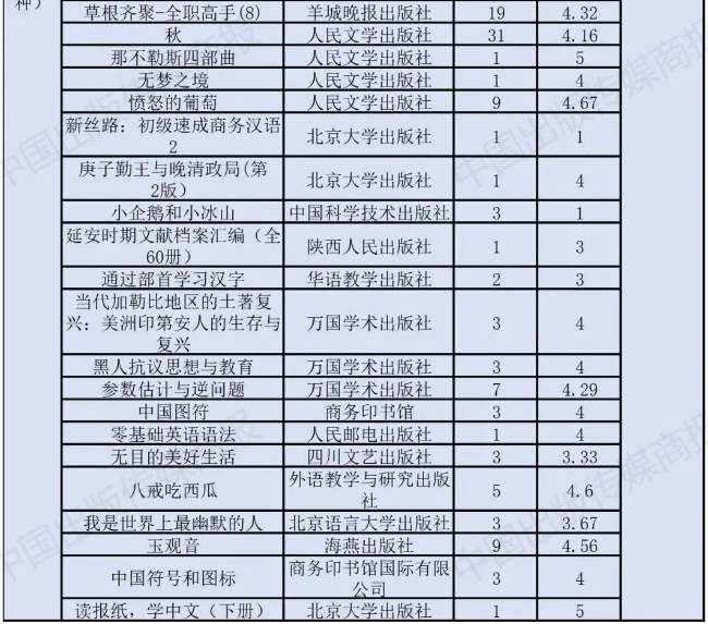 4.与往年报告一样,出版机构名称省略了出版集团及有限公司等名称,如当数据出现“重庆出版集团、重庆出版社”时,只记录为“重庆出版社”。
