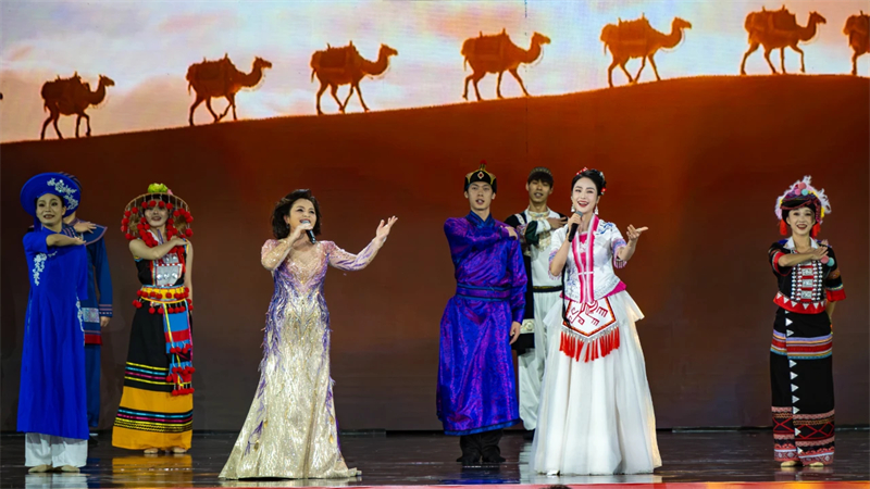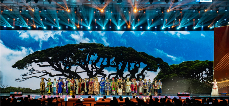 国宝级歌唱家吴碧霞和歌手刘海嘉将歌颂民族团结的《爱我中华》与展现广西人民热情好客的《多谢了》巧妙融合。