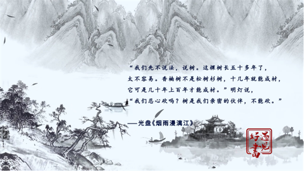 保护香楠树这个情节我觉得它是最有张力的,里面明灯这个人物,他为了保护这棵香楠树就把自己绑在树上面,要跟树共存亡,这个细节我觉得是非常有力量的。