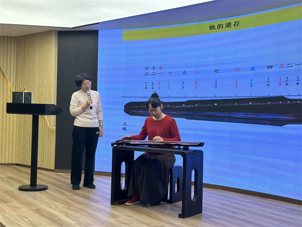 梁馆长向读者朋友生动且详细地讲述了朱载堉富有传奇色彩的一生,回顾了朱载堉的非凡身世、曲折的成长经历,介绍了朱载堉的发明创造及其对世界文化的贡献,分享了这位百科全书式学者远离权势、潜心科研,极具创新与实践的科学家精神。秦彤老师携古琴与梁馆长一起演示了十二等程律在乐器上的应用,并弹奏了唐代琴师董庭兰所作的《颐真》一曲,迎来了现场观众的热烈掌声。