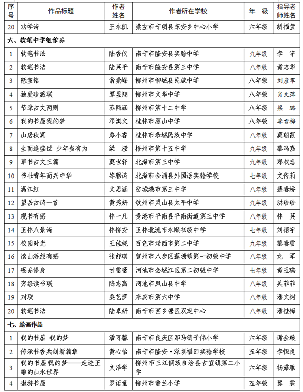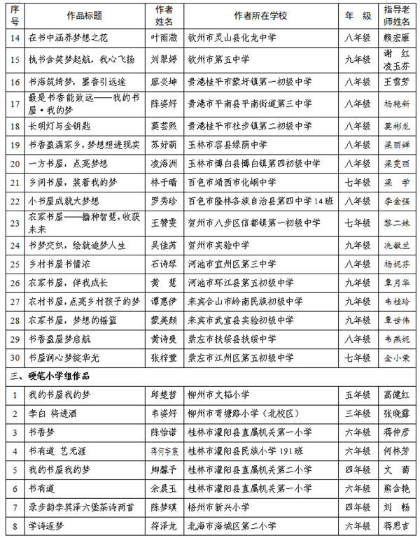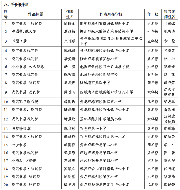 1.2024年“我的书屋·我的梦”广西农村少年儿童阅读实践活动优秀征文、书法、绘画、手抄报作品名单.pdf