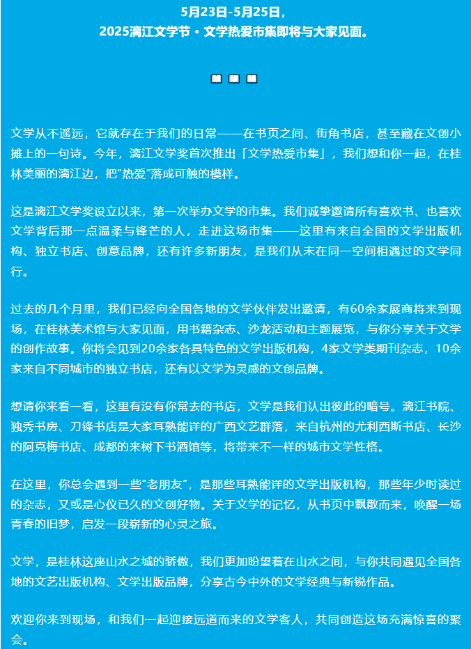 2025漓江文学节 · 文学热爱市集 参展全名单