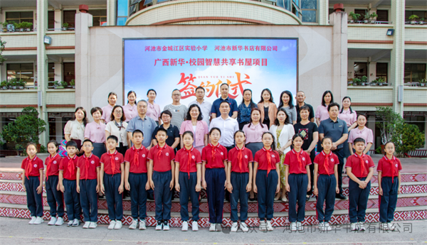 5月13日,河池市首家校园智慧共享书屋签约仪式在河池市金城江区实验小学举行,河池市新华书店有限公司鲁晓辉总经理、河池市金城江区实验小学韦孟玲校长出席并签署合作协议。