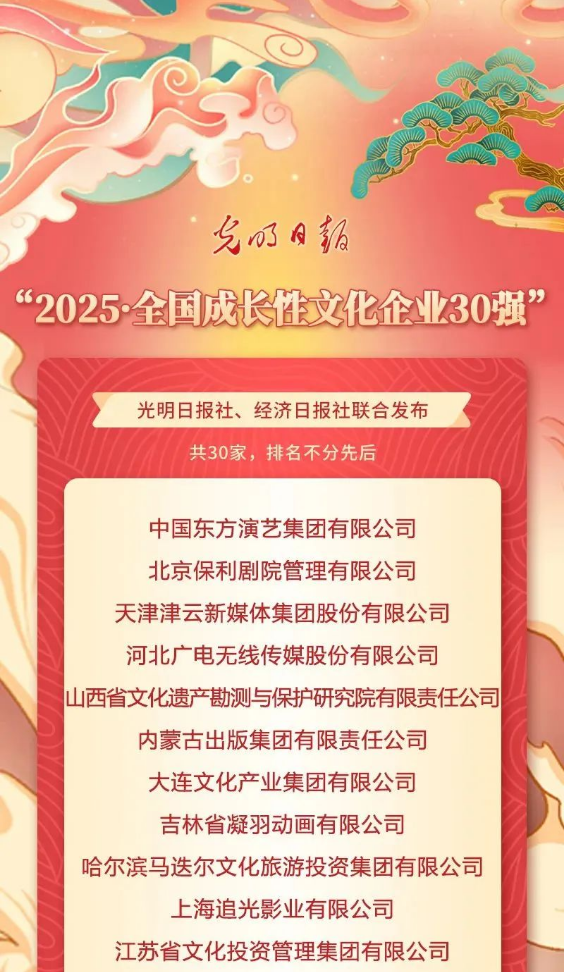 5月26日,光明日报社和经济日报社联合向社会发布“2025·全国文化企业30强”名单和“2025·全国成长性文化企业30强”名单。广西出版传媒集团旗下接力出版社成功入选“2025·全国成长性文化企业30强”。
