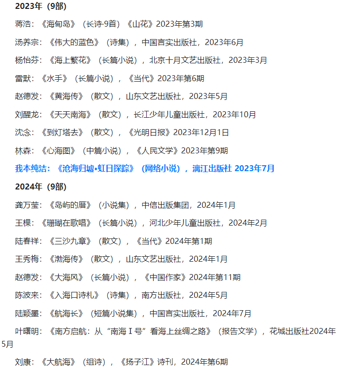 6月8日下午,2025中国海洋文学年度榜(2020-2024)在海洋文化与文学系列活动开幕式上发布,43部海洋文学著作上榜。其中,广西作家杨映川的《独弦出海》、我本纯洁的《沧海归墟·虹日探踪》两部作品入选。