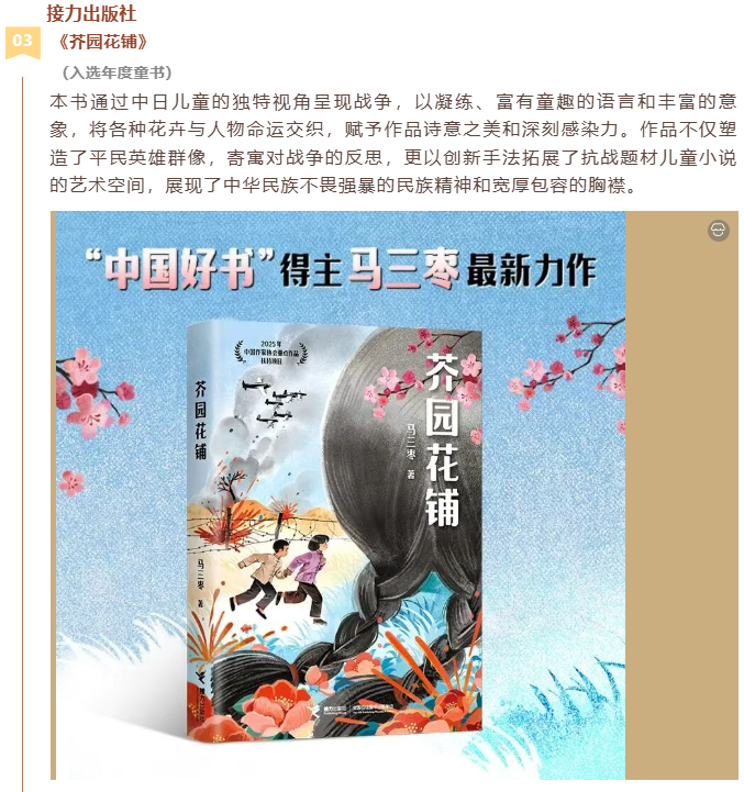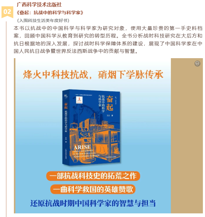 《中国新闻出版广电报》2025 年度好书发布仪式在北京广播大厦举行,发布年度好书、年度童书101种及入围图书47 种。该评选自2012年启动,已连续举办13届,是出版行业极具权威与影响力的榜单。2020年起增设年度童书评选,进一步成为引导全民阅读的重要指引。本次书单公布,广西出版传媒集团旗下广西人民出版社、漓江出版社、广西科学技术出版社、接力出版社等4家出版社共计6本好书入选、入围。