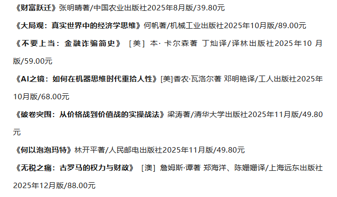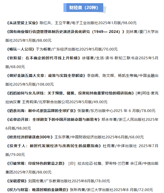 《中国出版传媒商报》2025年度影响力书单正式出炉,包含主题出版、文学、人文社科、艺术、教育、生活、科普、财经、童书共152种图书,以出版时间先后为序呈现。