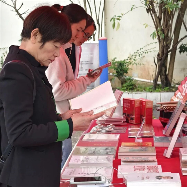 本次展销精选一批思想性、艺术性、可读性俱佳的精品图书,展台上尽显温情与活力,除了各民族文化读物、政策读本,还点缀着炮龙折扇、酸粉冰箱贴等宾阳特色文创产品,与图书相映成趣。