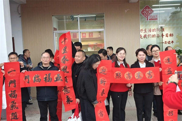 活动现场还有文艺表演,新城社区文艺队表演带来的情景剧《患难情感恩心》一下调动了大家的情绪,送春联活动更是让现场一片欢腾。
