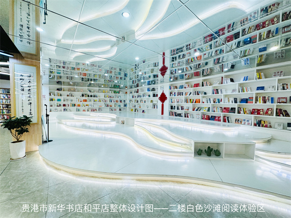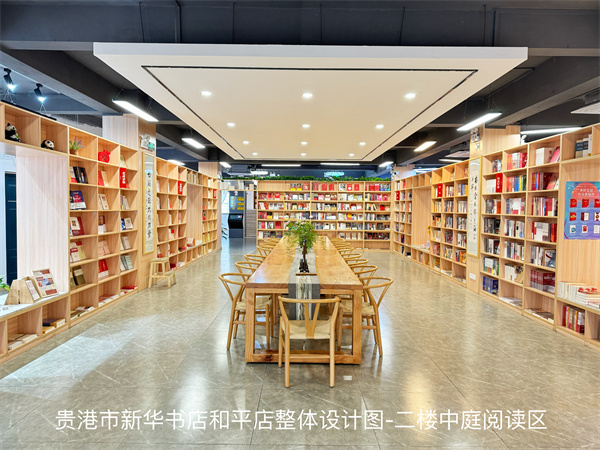 贵港市新华书店有限公司和平店(以下简称和平店)位于贵港市港北区贵城街道和平路105号,经营面积1600㎡,主要分为图书展示区、文创礼品区、活动体验区、公共阅读区、深度阅读区、少儿阅读体验区。店内图书选品以新书、畅销书、常销书为主,重点主题出版物摆放在醒目位置,常年在销品种2.1万,是贵港市目前规模最大、品种最齐全的出版物发行网点。和平店装修风格独特,以木饰面装饰为主,通过材质、光线等现代设计手段的变换,从而提升了整体空间质感。