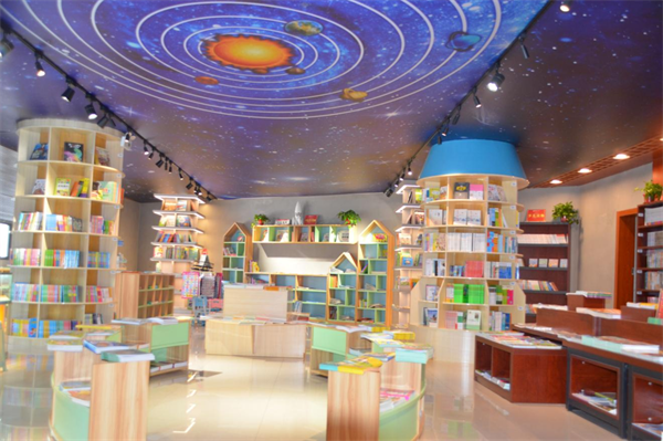 富川民族书店位于贺州市富川瑶族自治县富阳镇景阳路15号,经营面积600㎡,阅读空间200㎡,书店的空间设计独特,根据空间主体结构结合一些富川瑶族当地瑶文化特色定位而设计。店面优美整洁且富有民族特色和文化氛围。