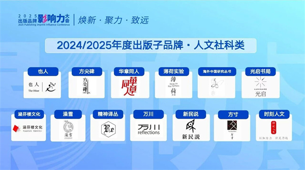 大会对2025年度杰出出版品牌及个人进行表彰,颁发年度出版子品牌影响力集团、年度出版子品牌及年度出版品牌主理人3类证书。包括致敬人文社科类、文学类、少儿与教育类等6大类60个优秀子品牌,致敬10家年度出版子品牌影响力集团、5位年度出版品牌主理人,彰显了出版行业品牌建设的丰硕成果。