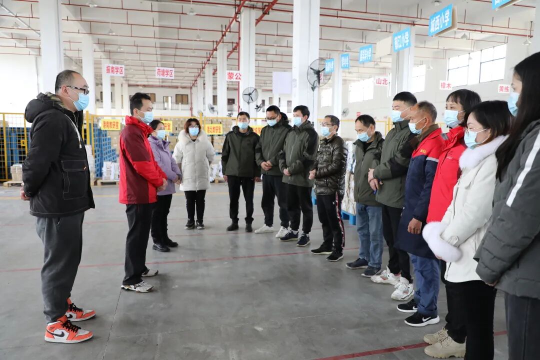 2月9日上午,贵港市新华书店有限公司(以下简称贵港市公司)党支部书记、总经理廖坚,党支部纪检委员、副总经理兼桂平分公司经理黄捷,副总经理、工会主席易飞一行,来到贵港市公司各部门,对疫情防控工作落实情况和2022春季教材教辅发运工作开展实地检查。