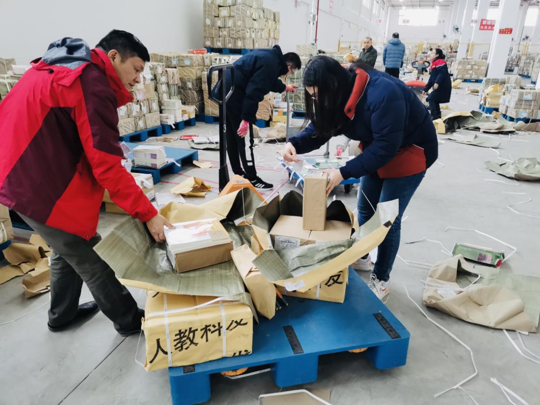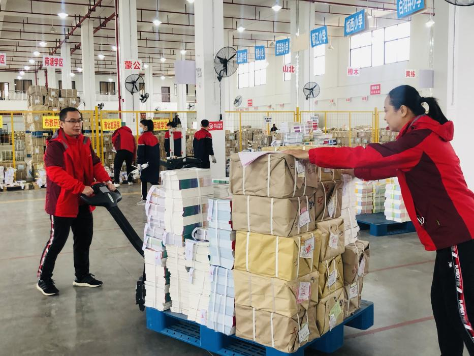 在物流中心,今年持续湿冷的天气和疫情形势,给2022春季教材教辅发运带来了更多的困难和挑战,贵港新华人们一如既往地坚守70多年来“课前到书,人手一册”的庄严承诺,不断重复着拆包验收、分类上架、拣货分发、货物包装、装车配送等工作,并积极与上游单位保持紧密联系,及时了解印制和送货情况,加强与教育部门、学校的沟通协调,确保教材教辅发运工作正常有序开展。